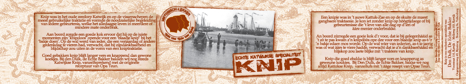 Knip was in het oude zeedorp Katwijk en op de vissersschepen de meest gebruikelijke traktatie en vormde de noodzakelijke begeleiding van iedere gebeurtenis, welke het alledaagse leven in meerdere of mindere mate onderbrak.